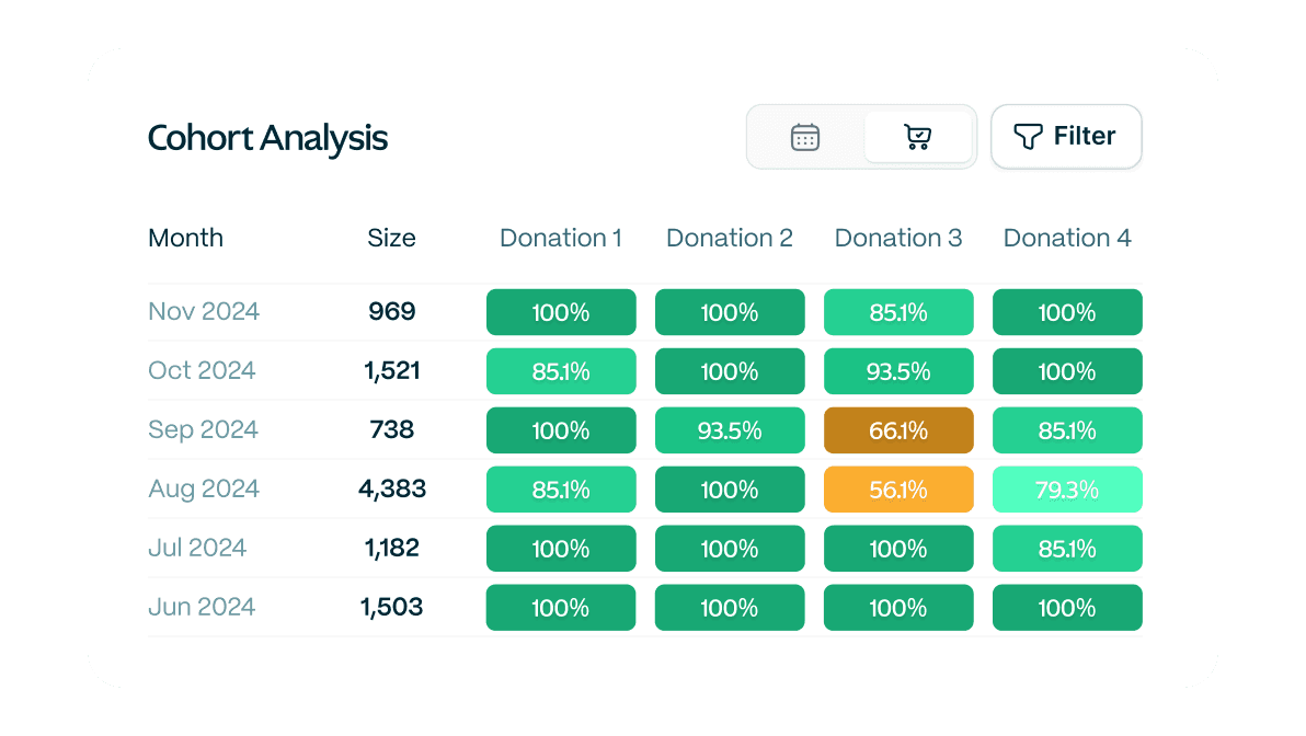 Access donor-specific insights that guide your retention, upgrade and reactivation strategies, helping you focus on what works.