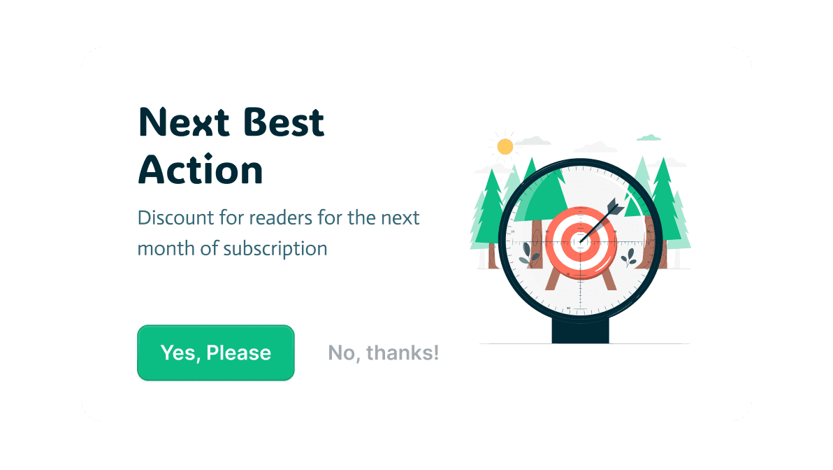 Prescriptive AI recommends next-best actions to retain, renew and reactivate subscribers, whether it’s offering a discount or simply sending a reminder.