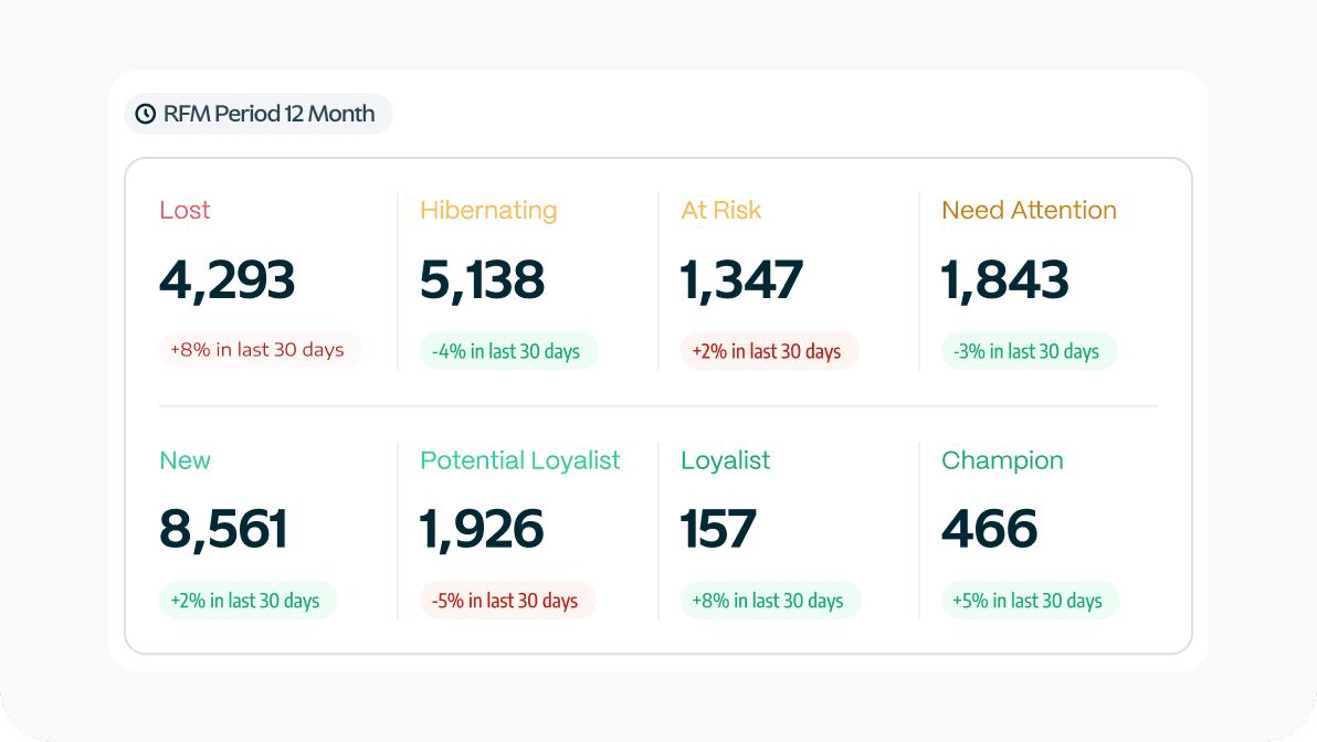 Segment customers using Churned’s RFM model to target high-value one-time buyers and turn them into loyal customers.