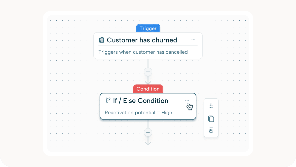 Our prescriptive AI model identifies the next best action to perform for each customer segment and automates it. This lets you deliver targeted, timely messages that drive retention and reactivation.